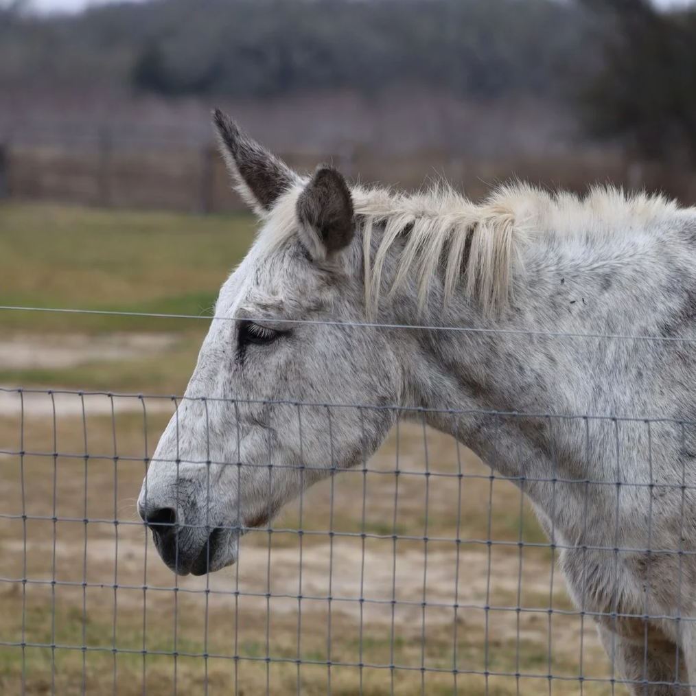 Boots is a 35-40 year old Molly mule surrendered to LMMR in fall 2025. She lived a quiet retirement with a loving owner until they were unable to care for her anymore due to health reasons. Boots is a sweet old girl who needs extra attention, feed and care to keep her body weight at her very long age. Because of her fragile health, she is a permanent ambassador for LMMR.