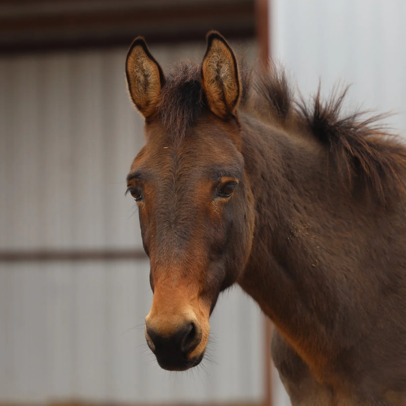 Knox is a ? year old John mule transferred to LMMR by GGDHR in fall 2025. Knox is a very handsome mule, but he has been very resistant to all handling and training attempts at GG, so his best life is lived in our sanctuary for the foreseeable future.